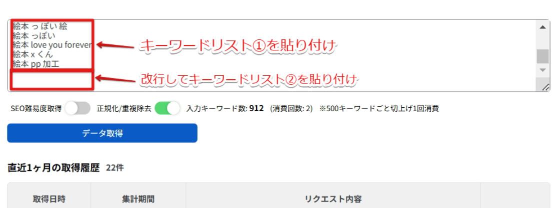 3.一括キーワード調査:キーワードを貼り付ける