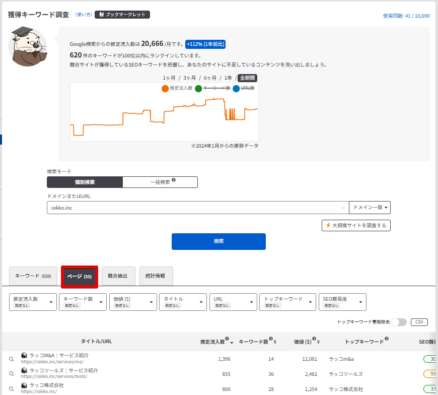 「他のサイトはどのようなキーワード・どのページでSEO集客しているのか?」を把握して、自分の施策に活かしましょう!