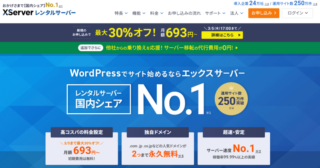 - 老舗の安心感をとるなら: エックスサーバー