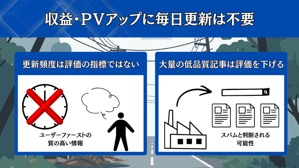 以下は、更新頻度にこだわるべきではない2つの理由です。