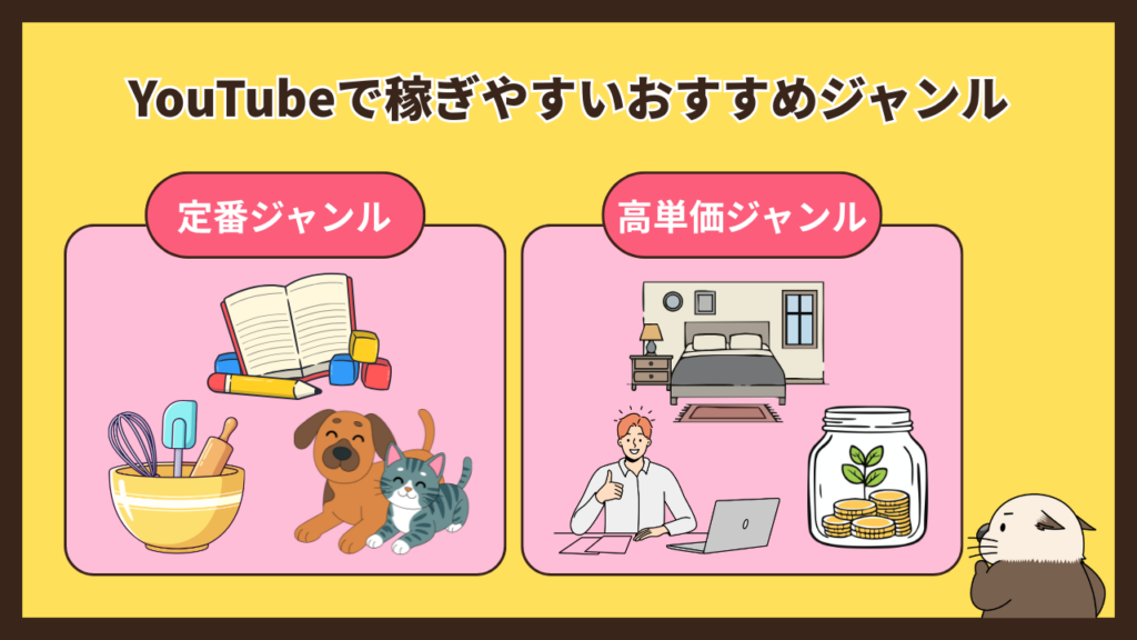 YouTubeには、多くの人が見る「定番ジャンル」と、広告の単価が高い「高単価ジャンル」があります。