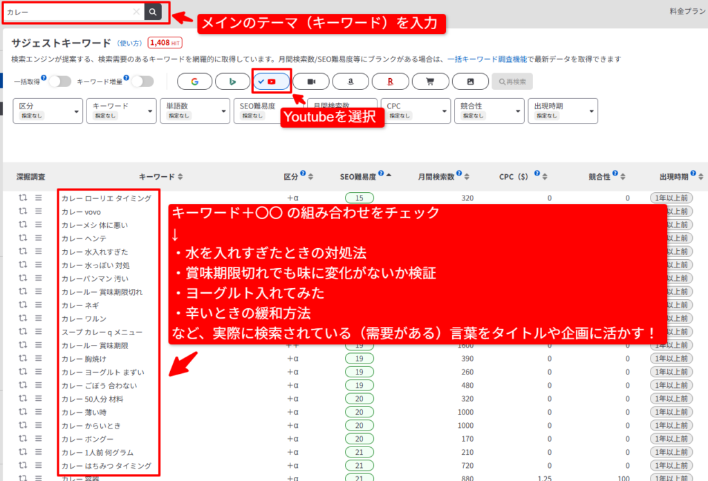 視聴者がどんなことを知りたがっているかがわかるので、動画のタイトル決めだけでなく、動画の企画(ネタ探し)にも大活躍です。