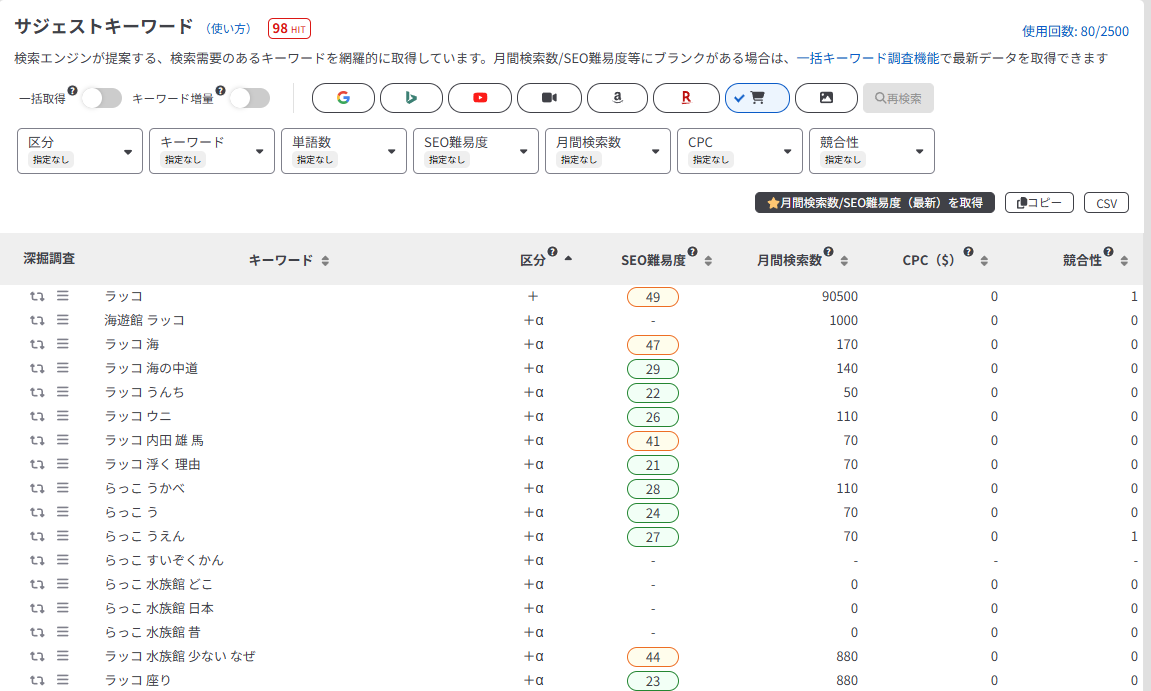 サジェスト(オートコンプリート/予測検索)で表示されるキーワードは、実際に検索需要が高いキーワードである可能性が極めて高いです。