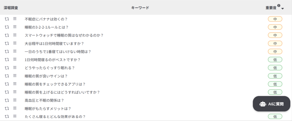 ユーザーが抱えている深い悩みや関連する質問が一括で取得できるため、タイトル作成の参考にできます。