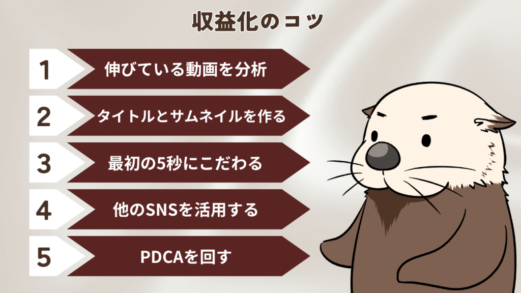無理のないペースで、動画の質を高めながら継続することが、途中で挫折せずに収益化を達成するための近道です。