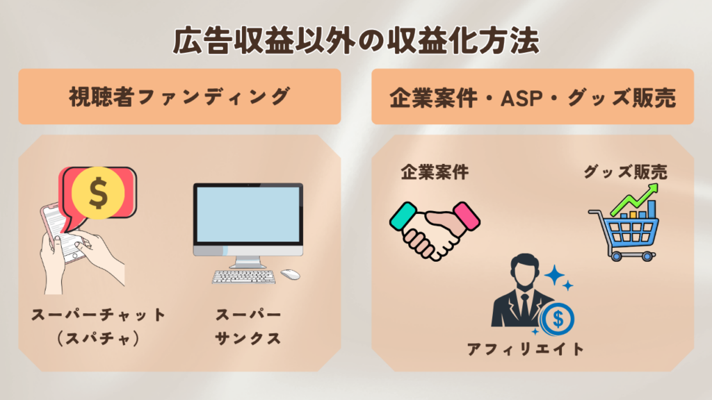チャンネルが成長し、特定のジャンルで影響力を持つようになると、YouTubeの機能以外でも収益を上げることができます。