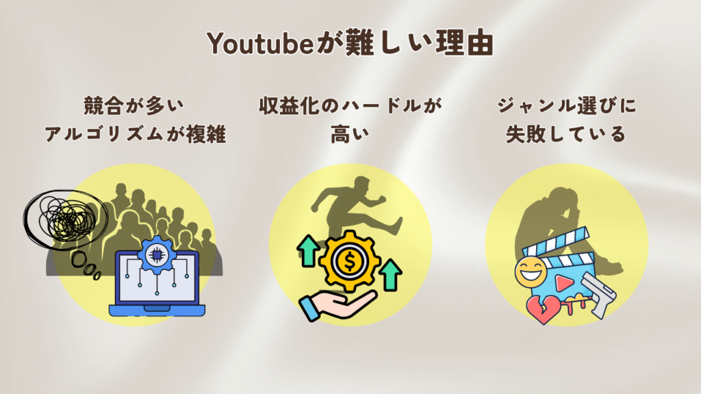 YouTubeの収益化が難しい理由の3つ目は、最初のジャンル選びを間違えている人が多いからです。