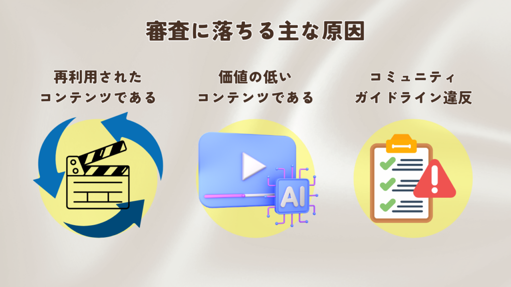 条件を一生懸命クリアしたのに、YouTubeの収益化審査に落ちてしまうこともあります。審査に落ちても絶望する必要はありません。原因を理解し、改善すれば再申請が可能です。