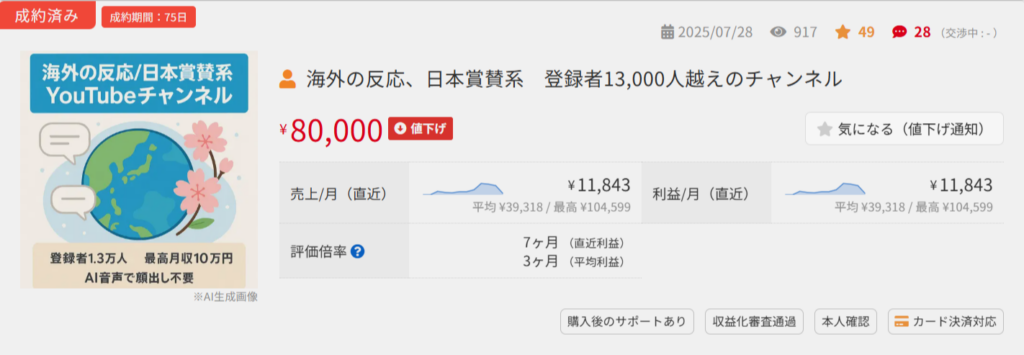 需要のあるジャンルで、収益化に成功しているチャンネルは資産になります。ラッコM&Aで実際に取引された収益化に成功しているチャンネルを紹介しますので、参考にしてください。