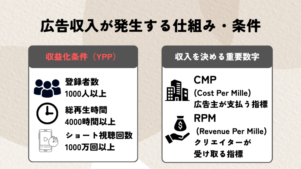 YouTubeの収入目安を把握したところで、そもそもどのようにしてYouTubeから広告収入が支払われているのか、その仕組みと条件を正しく理解することが大切です。