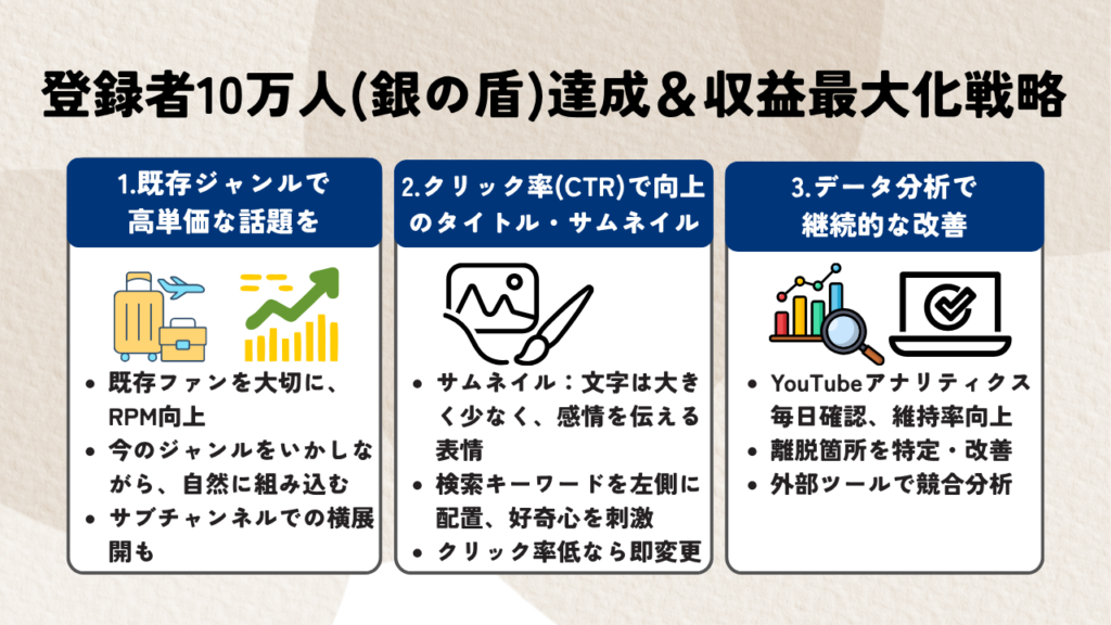 登録者10万人(銀の盾)を達成し収益を最大化する戦略